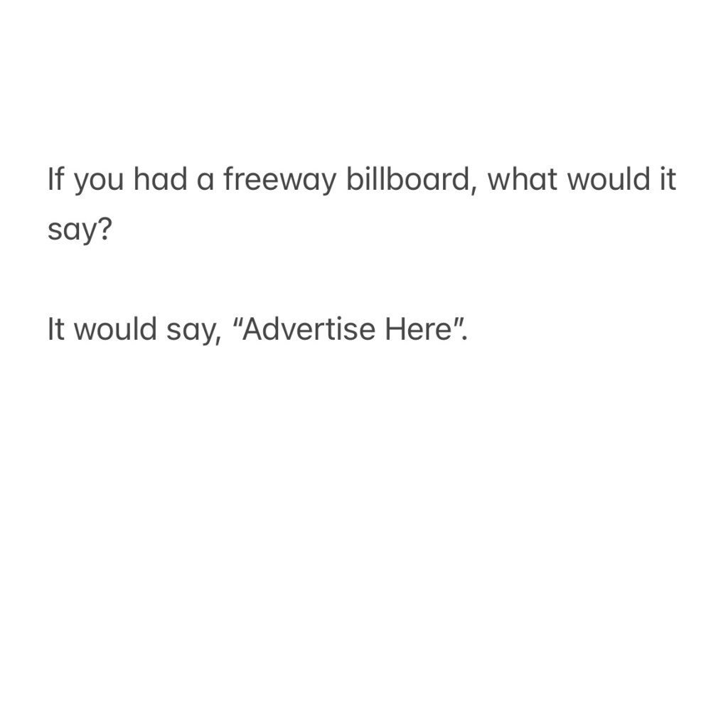 But just because I lack the willpower to part with my own products, there’s no reason for you to be discouraged! A little bit of marketing would do wonders for you! In fact, I just happen to have the most perfect freeway billlboard available on rent! 😉